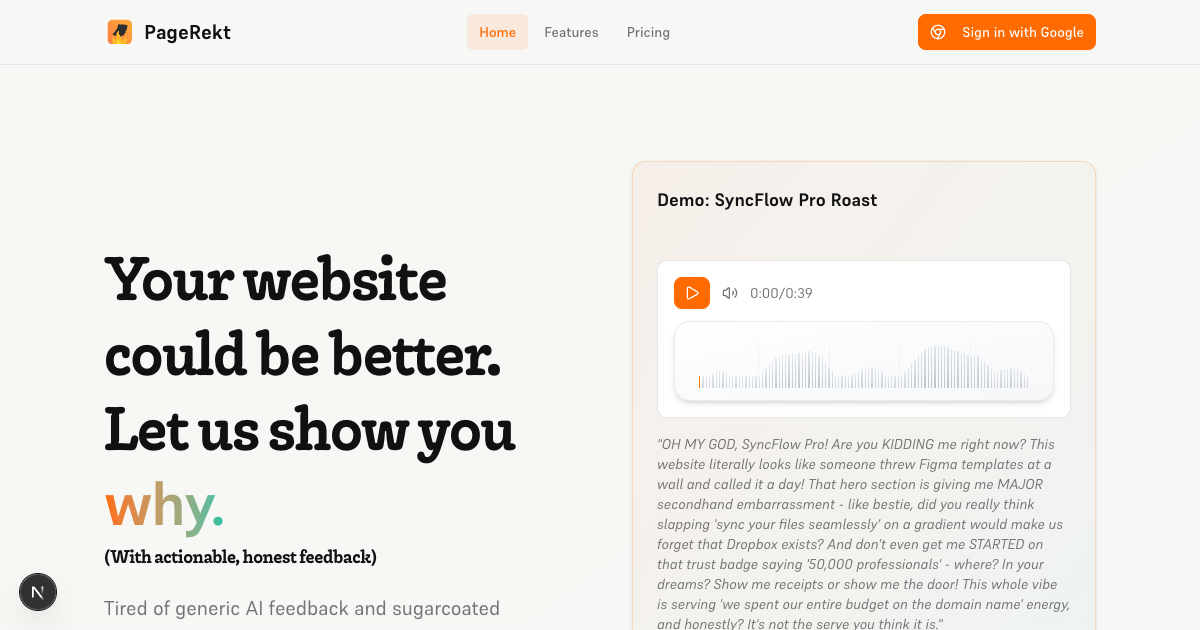Get roasted. Fix the issues. Watch conversions climb.